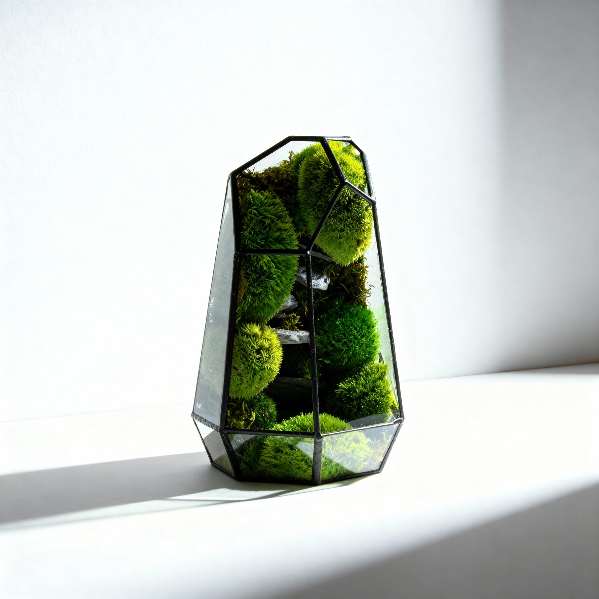 Our preserved terrariums require no watering or upkeep—just lasting beauty. Each piece is carefully crafted using real, preserved moss and botanicals that maintain their vibrant texture and colour for years to come. Perfect for adding a touch of calm, natural elegance to your home or workspace—effortlessly.